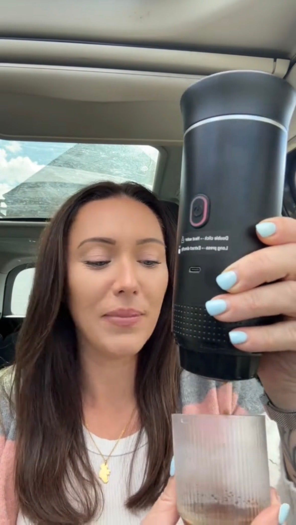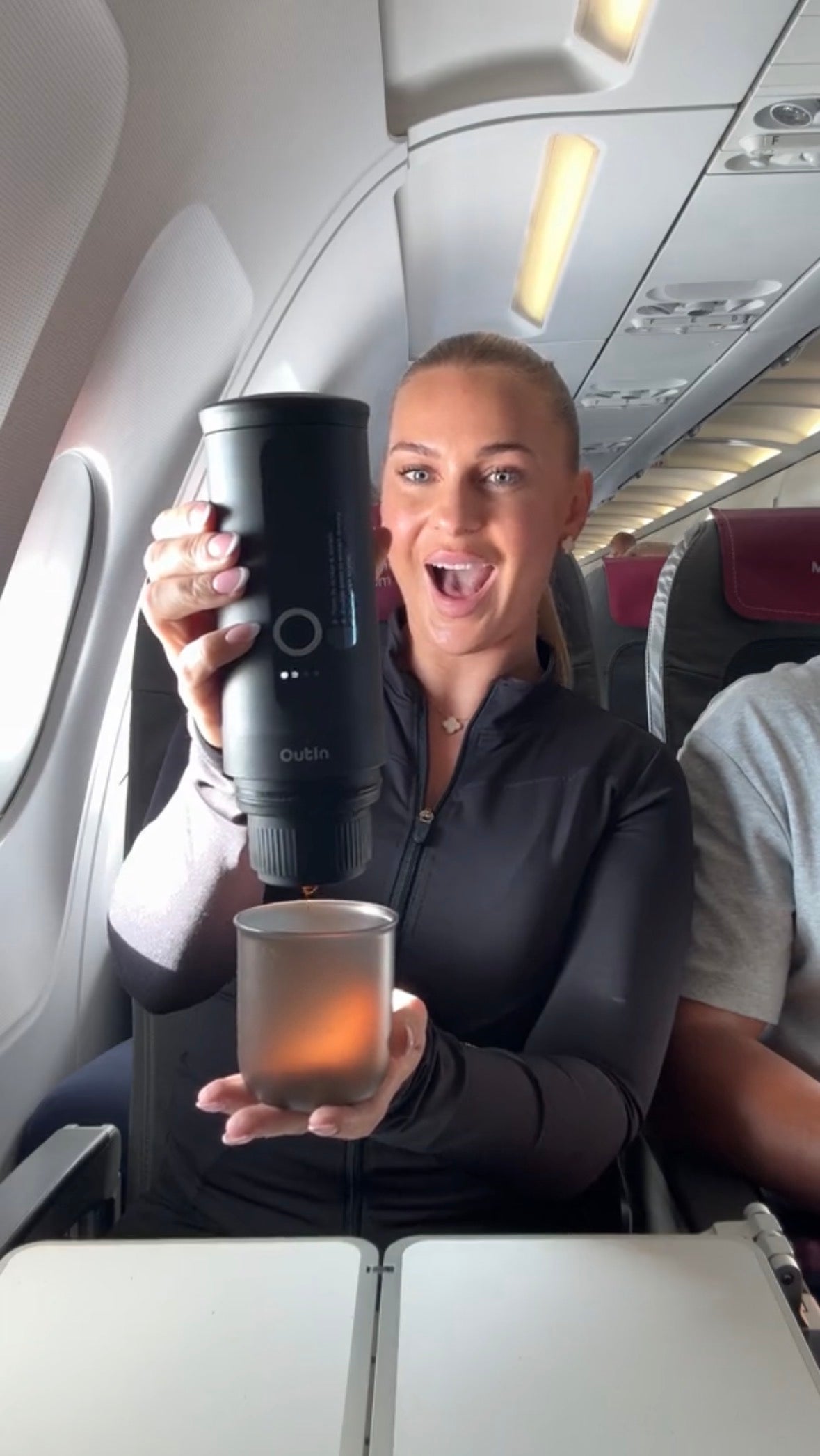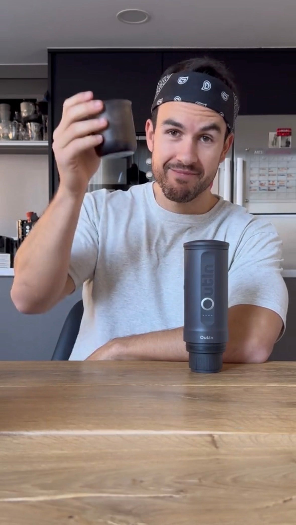 Minden, ami a tökéletes kávézáshoz kell: hordozható kávéfőző, stílusos kávéspohár, fejek kapszulákhoz és őrölt kávéhoz, töltőkábel, kiskanál, valamint egy ajándék hordozótáska.